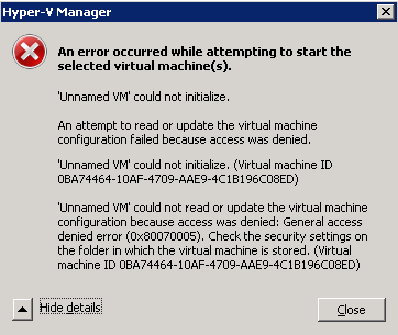 23 Apr General Access Denied error (0x80070005) in Hyper-V Manager when starting VM