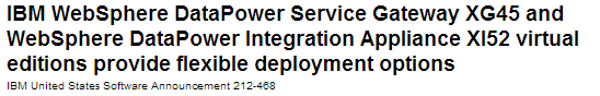 Colleague Kim came up with a very interesting evolution: DataPower as a virtual appliance, so the XG45 gateway and XI52 integration appliance as ESX images.