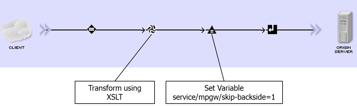A standard Web Service Proxy will invoke a back-end web service. The rule of the Web Service Proxy immediately returns – wihout invoking any back-end web service – by setting the variable service/mpgw/skip-backside to 1.