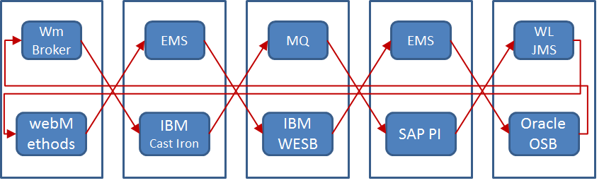 But as integration specialists we also encounter situations where we need to communicate with a MOM product from another vendor. ESB’s come with adapters to interconnect with other queuing solutions: JMS adapter, WebSphereMQ adapter etc.