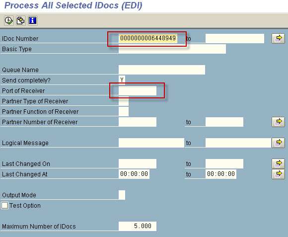 6. Enter fields for Process All Selected IDocs.