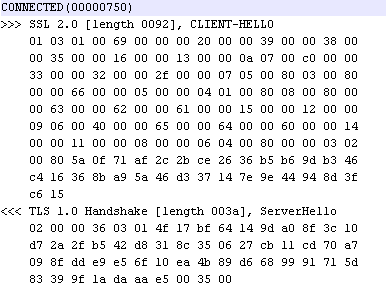 The output in “ssl-output.txt” shows us that this command uses SSL 2.0 for the initial handshakeand thenproceeds in TLSv1: